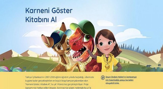 İş Bankası, bu yılki kampanyada çocuklara; dünya klasiklerinden Felix Salten’in “Bambi” ve Arthur Conan Doyle’un “Kayıp Dünya” kitaplarını karne hediyesi olarak veriyor. “Bambi”, çocukların hayvan sevgisini pekiştirecek, zor zamanlarda dayanışmanın ve kendi ayakları üzerinde durmanın önemini daha iyi kavramalarını sağlayacak içerikte bir kitap. “Kayıp Dünya” ise merak ve araştırma duygularını artıracak, hayal güçlerini zenginleştirecek bir içeriğe sahip. Kampanyada ayrıca, tüm dünyayı ilgilendiren küresel ısınma ve iklim değişikliği konusuna dikkat çekmek, çevre ve doğa konusunda çocukları bilinçlendirmek amacıyla TEMA Vakfı işbirliğinde hazırlanan “İklim Hakkında Konuşalım” kitapçığı da öğrencilerle buluşturuluyor.