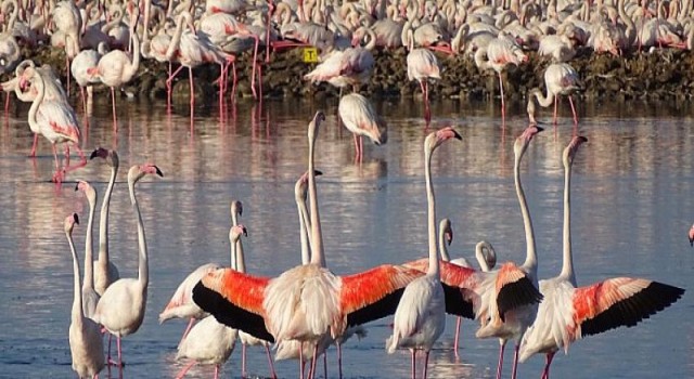 İzmir’in Gediz Deltası’nda yuva kuran yaklaşık 20 bin flamingo çiftinin yavruları yumurtadan çıkmaya başladı. Gediz Deltası’nda üreyen flamingoların yavruları, önümüzdeki yaz aylarının sonunda uçmaya başlayacak.