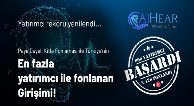 Yapay zekâ destekli tıp teknolojileri geliştirerek ülkemizi odyoloji alanında lider konuma taşıma idealiyle çalışan AIHear Technology, Otonom Odyometre Cihazı Projesi ile paya dayalı kitle fonlama ekosisteminde bir rekora imza attı.