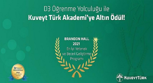 Dünyanın en prestijli danışmanlık şirketlerinden Brandon Hall tarafından düzenlenen Öğrenmede Mükemmellik Ödülleri 2021’de, Kuveyt Türk Akademi, Teftiş Kuruluna alınan müfettiş yardımcılarına yönelik düzenlediği “Denetim, Danışmanlık, Dönüşüm (D3)” programıyla altın ödüle layık görüldü.