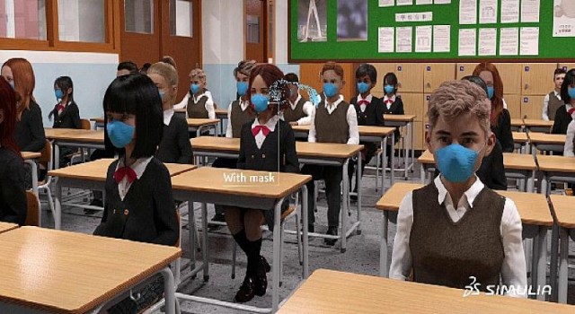 Simülasyonlar, maske takmanın damlacıkların bir öğrenciden diğerine yayılmasını azalttığını ortaya koydu. Ancak aynı simülasyonlar, yetersiz havalandırılan sınıflarda az miktardaki damlacıkların havada asılı kalabileceğini ve daha sonra eşyaların ya da öğrencilerin üzerine bulaşabileceğini de gösterdi. Hava yoluyla virüs bulaşma riskinin nasıl daha da azaltılabileceğini göstermek isteyen Dassault Systèmes, içinde enfekte bir öğrencinin bulunduğu bir sınıf simülasyonu gerçekleştirerek farklı havalandırma, oturma düzeni ve hava akışı yollarıyla hangi sınıf yerleşiminin öğrenciler arası enfeksiyon riskini en az seviyeye indirdiğini belirledi.