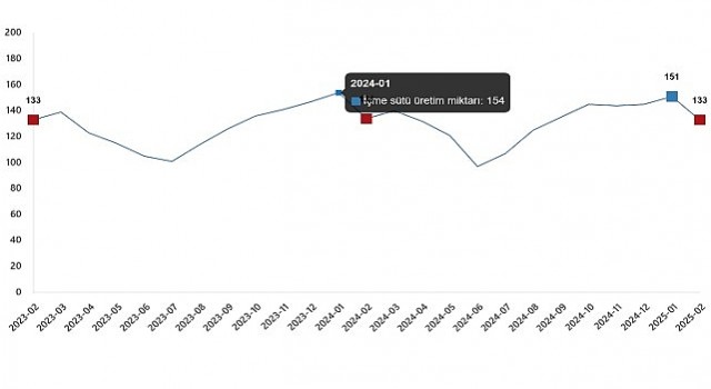 İçme sütü üretim miktarı, Şubat 2025