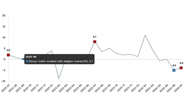 Sanayinin alt sektörleri incelendiğinde, 2024 yılı Temmuz ayında madencilik ve taş ocakçılığı sektörü endeksi bir önceki aya göre %2,1 arttı, imalat sanayi sektörü endeksi %0,5 arttı ve elektrik, gaz, buhar ve iklimlendirme üretimi ve dağıtımı sektörü endeksi %1,9 azaldı.