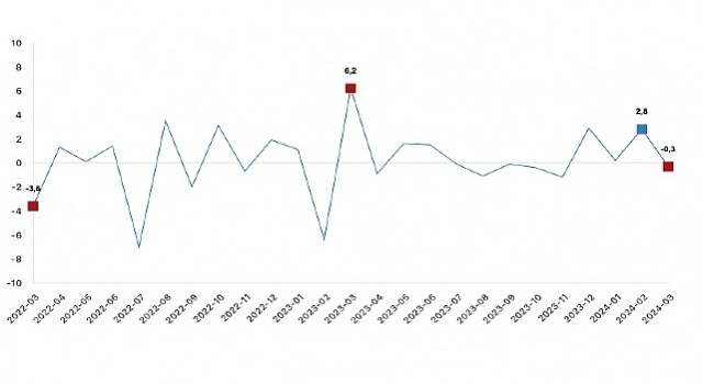 Sanayinin alt sektörleri incelendiğinde, 2024 yılı Mart ayında madencilik ve taş ocakçılığı sektörü endeksi bir önceki aya göre %0,2 arttı, imalat sanayi sektörü endeksi %0,3 azaldı ve elektrik, gaz, buhar ve iklimlendirme üretimi ve dağıtımı sektörü endeksi %1,5 azaldı.