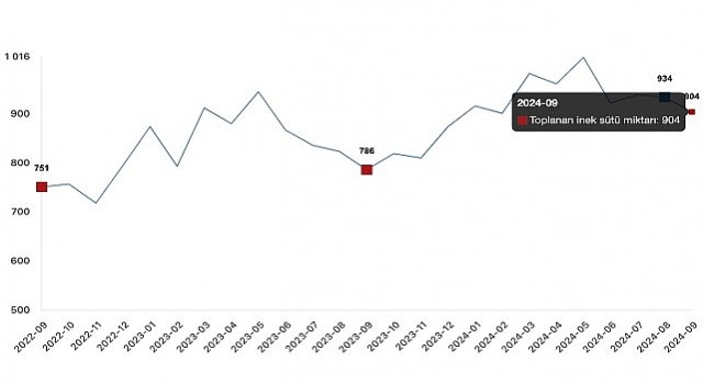 Bir önceki ay 933 bin 514 ton olan ticari süt işletmelerince toplanan inek sütü miktarı Eylül ayında %3,2 oranında azalarak 903 bin 509 ton oldu.