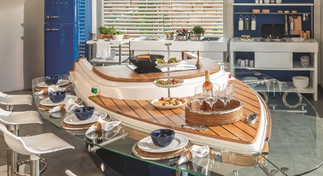 Bodrum’un engin denizinden ilham alınarak tasarlanan tekne modelli Aquamarine, Bodrum Mutfak Mobilya’nın özgün ve yaratıcı tasarımları arasında yerini alıyor. İster bahçe ister mekan içinde ister havuz başında bir mutfaktan daha fazlasını sunan Aquamarine mutfak, patentli tekne tasarımıyla hayallerin sınırlarını zorluyor. Pişirme bölümünden yemek bölümüne hızlı servis imkânı ile misafirleriniz ile kesintisiz bir sohbet ortamı sunan Bodrum Mutfak Mobilya’nın Aquamarine modeli, özel işçilikle işlenmiş her detayı göz dolduruyor. Kişiye özel tasarımıyla her zevk ve tarzı mutfak tasarımına yansıtan Bodrum Mutfak Mobilya, Aquamarine modeli ile mutfağınıza deniz esintilerini getiriyor. Masif teak detaylar, ses sistemi, özel aydınlatması, ahşap aksesuarlar, özel tasarım kesme tahtası, şarap rafı ve pişirme ünitesi bulunan Aquamarine modelde, her detay el emeği tasarım harikasına dönüşüyor.