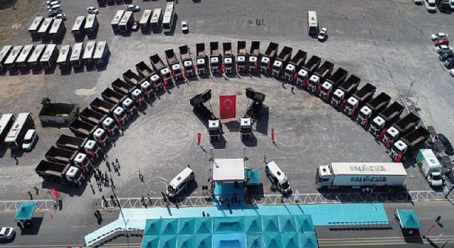 Balıkesir Büyükşehir Belediyesi, şehre dört koldan hizmet vermeye devam ediyor. Sağlıktan çevreye, ulaşımdan altyapıya birçok alanda çalışmalarını sürdüren Büyükşehir Belediyesi, araç filosunu da güçlendirdi. 30 milyon 250 bin Türk Lirasına alınan kamyonlar, Büyükşehir Belediyesi’nin sorumluluğunda olan 20 ilçede 5 bin 100 kilometre yolda bakım ve onarım çalışmalarına katılacaklar. Gar bölgesinde düzenlenen ve Büyükşehir Belediye Başkanı Yücel Yılmaz’ın ev sahipliği yaptığı kamyon hizmete alım törenine; Balıkesir Milletvekili Yavuz Subaşı, Karesi Kaymakamı Abdulkadir Demir, Balıkesir Ticaret Odası Başkanı Rahmi Kula, Balıkesir Esnaf ve Sanatkarları Odaları Birliği (BESOB) Başkanı Fehmi Erdem, Şoförler ve Otomobilciler Esnaf Odası Başkanı Rıza Tekin, FORD Erdeğer Yönetim Kurulu Başkanı Abdulkerim Erdoğan, ilçe belediye başkanları, kamu kurum temsilcileri, sivil toplum kuruluşları ve vatandaşlar katıldı.