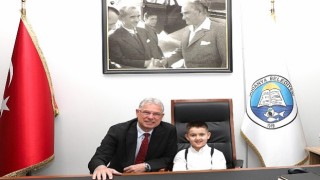 Başkanlık koltuğunu Erkan Aydın’dan bir günlüğüne devralan Sınav Koleji öğrencisi Duru Kılıç ise, “Tüm çocukların 23 Nisan Ulusal Egemenlik ve Çocuk Bayramı’nı kutlarım. Bize bu bayramı hediye eden Gazi Mustafa Kemal Atatürk ve silah arkadaşlarına teşekkürü bir borç bilirim. Öncelikle kreş sayımızı yükselteceğiz. Bu sayede bizler eğitim alırken, annelerimiz de çalışmış olacak. Park sayılarımızı arttıracağız. Sokaktaki canlarımız için daha fazla beslenme ve tedavi alanları oluşturacağız” dedi. Başkanlık koltuğuna oturan Sadi Etkeser İlköğretim Okulu öğrencisi Zeynep Azra Bilik de gelecekle ilgili hayallerini ve isteklerini Başkan Aydın ile paylaştı.