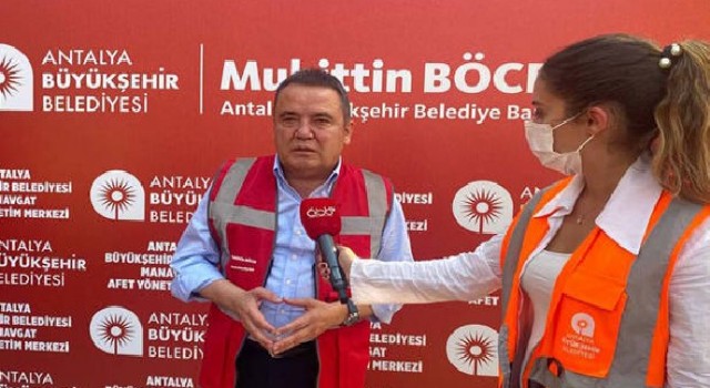 Yangın sürecinde 30 bin dekar ekili alan üzerinde 2800 yapı inşaatının kül olduğunu açıklayan Başkan Böcek, “Biz Antalya büyükşehir belediyesi olarak yangının söndürülmesi aynı zamanda yangından zarar gören vatandaşlarımızın yanında olmaya çalışıyoruz. Aşevimiz burada. Hayırseverler burada. Herkes burada siyaset üstü bir çalışma yapıyor. Halkımız seferber oldu. Duyarlı bütün büyükşehir belediye başkanlarım başta İstanbul, Ankara ve İzmir olmak üzere Konya, Denizli, Muğla belediye başkanlarımız yardımcı oluyor. Ancak, yangının söndürülememesi bizleri üzüyor” dedi.