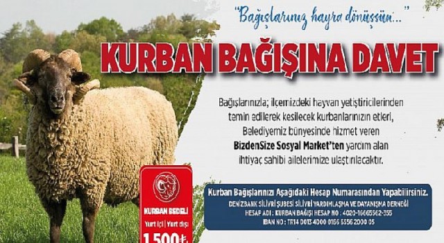 Silivri Belediye Başkanı Volkan Yılmaz, yaklaşan kurban bayramı öncesi Silivri’de yaşayan ihtiyaç sahibi ailelere dağıtılmak üzere vatandaşlara BizdenSize Sosyal Markete kurban bağışı yapmaları çağrısında bulundu.Silivri Belediyesi ilçe genelinde yaşayan ihtiyaç sahibi aileler için “Bağışlarınız hayra dönüşsün” sloganı ile kurban bağışı kampanyası başlattı. Bağış kampanyası ile ilgili bilgi vererek vatandaşlara çağrıda bulunan Silivri Belediye Başkanı Volkan Yılmaz, “Silivri Belediyesi olarak ilçemizde yaşayan, kimsesiz, bakıma muhtaç, ihtiyaç sahibi ailelerimizi yalnız bırakmıyoruz. Sosyal belediyecilik anlayışı ile her ay ihtiyaç sahibi ailelerimize BizdenSize Sosyal Market aracılığı ile destek oluyoruz. Milli ve manevi bağlarımızın kuvvetlendiği, birlik ve beraberliğimizin pekiştiği bayramlarımızdan biri olan Kurban Bayramında da ihtiyaç sahibi ailelerimizin hanelerini bereketlendirmek adına kurban bağışı kampanyası başlattık. Bağış yapmak isteyen vatandaşlarımız, kurban bağışı için açılan hesap numaralarına bağışlarını yapabilirler. İlçemizdeki hayvan yetiştiricilerinden temin edeceğimiz kurbanlıkları kesim alanında oluşturduğumuz hijyenik bir ortamda dini vecibelere uygun bir şekilde vekaletle keseceğiz. Kesim esnasında video kaydı alarak bağışçılarımıza göndereceğiz. Bağışlardan elde ettiğimiz etleri BizdenSize Sosyal Marketimize kayıtlı ihtiyaç sahibi ailelerimize teslim edeceğiz. Tüm hemşehrilerimizi ‘Bağışlarınız hayra dönüşsün’ diyerek Bizden Size Sosyal Marketimize bağış yapmaya davet ediyor, şimdiden kurban bayramlarını tebrik ediyorum.” dedi. BİZDENSİZE SOSYAL MARKET KURBAN BAĞIŞI HESAP NUMARALARIKurban Bedeli: Yurt İçi/Yurt Dışı – 1500 TLKurban Bağışlarınızı Aşağıdaki Hesap Numarasından YapabilirsinizDenizbank Silivri Şubesi Silivri Yardımlaşma ve Dayanışma DerneğiHesap Adı: Kurban BağışıHesap No: 4020-16665562-355IBAN No: TR14 0013 4000 0166 6556 2000 05 Kaynak: (BHA) - Beyaz Haber Ajansı