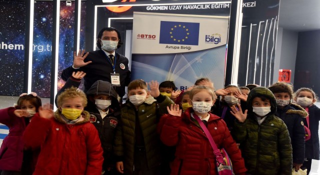 Uzay ve havacılık alanında çocuklar ve gençlerde farkındalık oluşturmak amacıyla BTSO’nun vizyonuyla kurulan merkezi 2 saat boyunca gezen çocuklar, ilk olarak havacılık katındaki düzenekleri inceledi. Hayatlarında ilk defa uçağa dokunan çocuklar, ayrıca simülasyonda uçak kullanma deneyimi yaşadı. Çocuklar ayrıca merkezde bulunan gerçek boyutlu A-320 uçak modelini de gezdiler. İlk defa yolcu uçağının koltuklarına oturan çocuklar, uçağın kokpitini de yakından görme imkanı buldu.