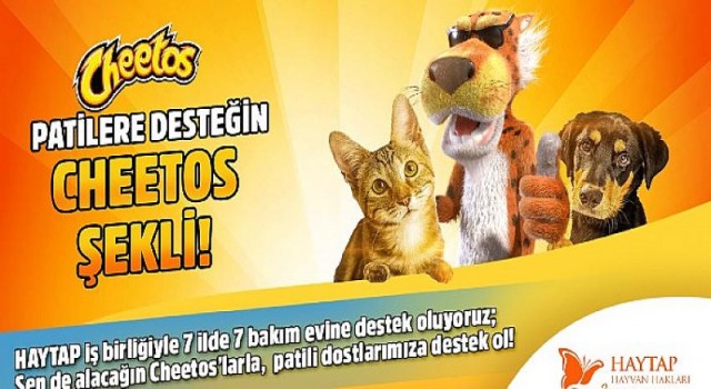 Cheetos’un Haytap ile beraber gerçekleştirdiği “Patilere desteğin Cheetos şekli” projesine destekte bulunuyor.