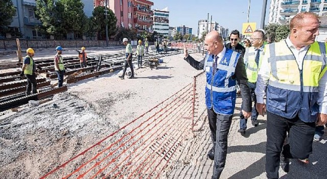 İzmir Büyükşehir Belediye Başkanı Tunç Soyer yapımının yüzde 80’i tamamlanan Çiğli Tramvayı'ndaki çalışmaları inceledi. 2023’ün Mart ayında hattın işletmeye alınacağını müjdeleyen Soyer, “İzmir’i demir ağlarla örmeye devam ediyoruz” dedi.