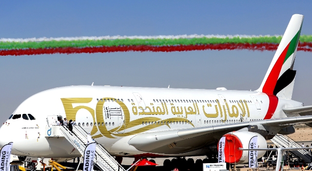 Emirates, Dubai Veliaht Prensi Şeyh Hamdan bin Muhammed bin Reşit Al Maktum; Şeyh Mansur Bin Muhammed Bin Reşit El Maktum; Şeyh Ahmed bin Muhammed bin Reşit El Maktum ve Şeyh Muhammed bin Maktum bin Reşit El Maktum’u Emirates A380'nin teşhir alanında ağırlamaktan onur duydu. Emirates'in kısa bir süre önce kullanıma sunduğu Premium Ekonomi Sınıfı kabinin yer aldığı ve BAE'nin altın jübilesini kutlamak için Birleşik Arap Emirlikleri'nin 50. Yılı giydirmesiyle dekore edilen en yeni dört sınıflı A380 uçağı ilgi odağı olmaya devam etti. Emirates Uçuş Eğitimi Akademisi tarafından eğitim uçuşları için kullanılan Cirrus SR 22 ve Embraer Phenom 100 jetleri de ziyaretçiler için teşhirdeki yerini aldı.