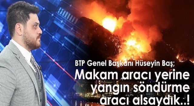 BTP Genel Başkanı Hüseyin Baş 9 Ekim 2020 tarihinde Hatay'da çıkan ve büyük kayba neden olan yangının ardından, "Makam araçları yerine yangın söndürme araçlarına yatırım yapma fikrini artık tartışmalıyız." çağrısı yapmıştı.