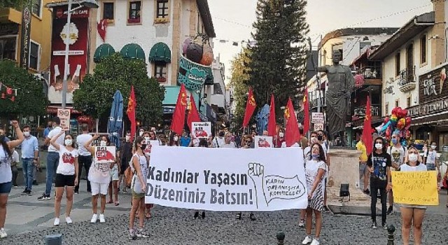 Türkiye Komünist Partisi Antalya Ulus, Bahçelievler, Güzeloba Kadın Dayanışma Komiteleri ve Türkiye Komünist Gençliği Azra Gülendam Haytaoğlu için Attalos Heykeli Önü’nde bir araya geldi.