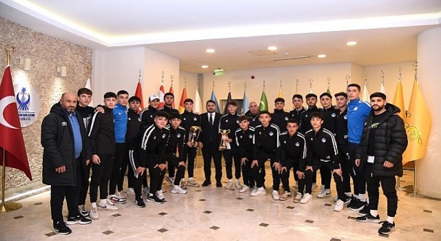 Sporcular şampiyonluk coşkusunu paylaşmak üzere Başkan Çırpanoğlu’nu makamında ziyaret etti. Büyük bir azim ve kararlılıkla kupaya uzanan genç yetenekler, zaferlerini taçlandıran kupaları Başkan Çırpanoğlu’na gururla teslim etti.