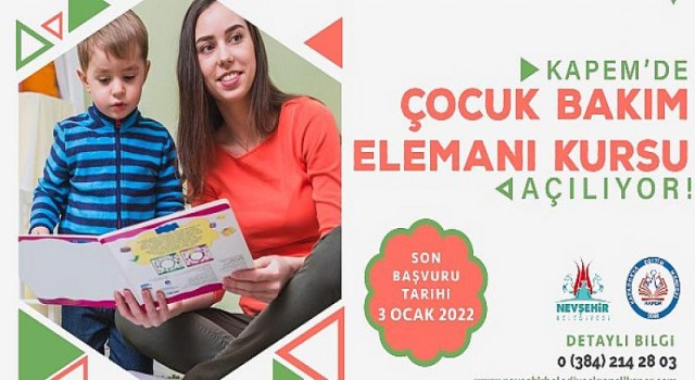 Nevşehir Belediyesi Kapadokya Eğitim Merkezi (KAPEM)’n de Çocuk Bakım Elamanı Kursu açılacak. Yeni yılın ilk ayında açılacak olan kursa katılmak isteyenler kayıtlarını 3 Ocak 2022 tarihine kadar yaptırabilecek.