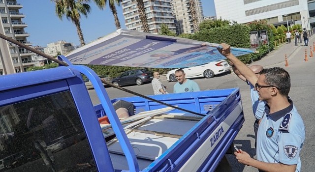 Kent içi disiplini korumak, toplum sağlığı ve huzurunu güvence altına almak için çalışmalarını yoğunlaştıran Karşıyaka Belediyesi, çevre ve görüntü kirliliğine karşı da etkin bir mücadele yürütüyor. Bu kapsamda Zabıta Müdürlüğü bünyesindeki özel ekip, ana caddeler başta olmak üzere tüm ilçe genelinde her gün izinsiz açık hava reklam ve afiş denetimi yapıyor. Kural dışı şekilde ağaçlara, aydınlatma direklerine, trafik tabelalarına ve çeşitli yerlere sabitlenen tanıtım görselleri tek tek kaldırılıyor ve imha ediliyor. Toplanan materyal sayısı günde 200-300 civarına ulaşıyor. Ayrıca yine izinsiz olarak kartvizit ve broşür dağıtımına da taviz verilmiyor. Bu ve benzeri yöntemleri kullandığı tespit edilen işletmeler hakkında cezai işlem yapılıyor.