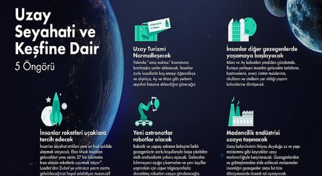 - Uzay turizmi yaygınlaşacak ve uzayda oteller yapılmaya başlanacak.