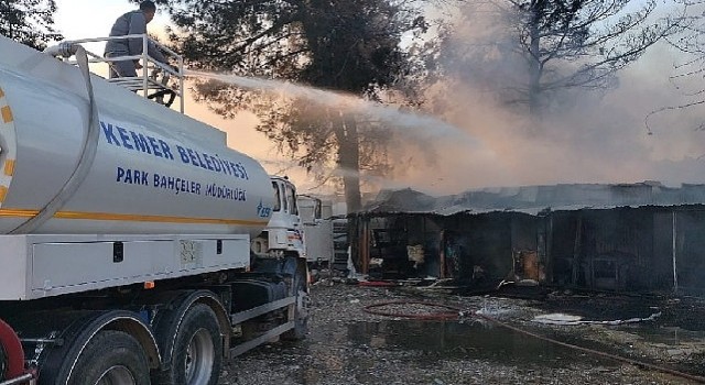 Kemer’de henüz belirlenemeyen bir nedenle hurdacılara ait barakada yangın çıktı. Ormanlık alana da sıçrayan yangın, büyümeden kontrol altına alındı. Kemer Belediye Başkanı Necati Topaloğlu, bölgeye giderek incelemelerde bulunarak yetkililerden bilgi aldı.