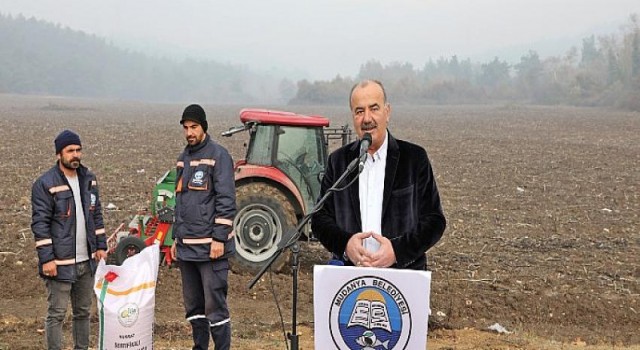 Mudanya Belediyesi, “Topraktan Halka, Tarladan Sofraya” projesi kapsamında bu kez buğday tohumlarını toprakla buluşturdu. Buğday ekim töreninde konuşan Başkan Türkyılmaz, “Buğdayımızı un haline getirip yine ihtiyaç sahibi hemşehrilerimin sofralarına ulaştıracağız. Bereketli olsun” dedi.