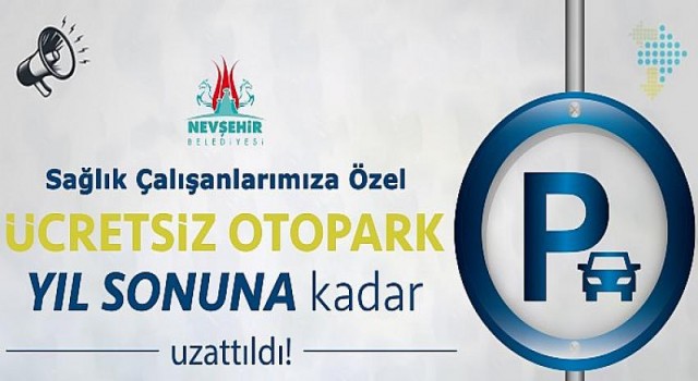 Sağlık çalışanlarının Nevşehir Belediyesi Turizm ve Spor A.Ş tarafından işletilen otoparkları ücretsiz kullanma hakkı 31 Aralık 2021'e kadar uzatıldı.
