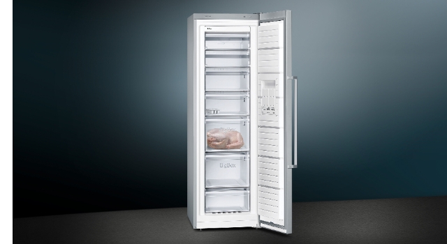 Siemens Ev Aletleri’nin noFrost derin dondurucuları GS29NVWE0N, GS36NVIF0N, GS36NVWF0N ve GS54NVWE0N ile yiyeceklerinizin lezzetini uzun süre koruyarak saklayabilirsiniz. noFrost teknolojisi ile havalandırma sistemi, nemi dondurucu bölmeden ayırarak havanın kuru kalmasını sağlar. Böylece yiyeceklerin üzerinde buzlanma oluşmasını engeller.
