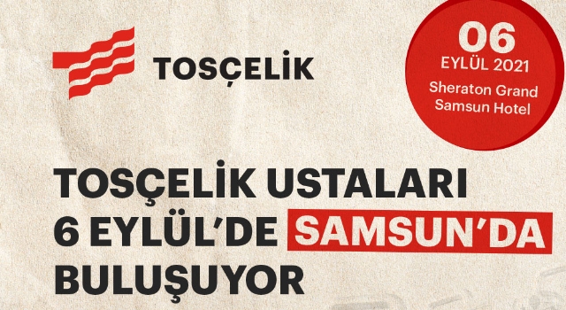 Tosyalı Holding şirketlerinden Tosçelik tarafından düzenlenen Tosçelik Ustaları Buluşuyor programı 6 Eylül Pazartesi günü Samsun, 7 Eylül Salı günü Trabzon ve 20 Eylül Pazartesi günü Bursa’da gerçekleştirilecek.