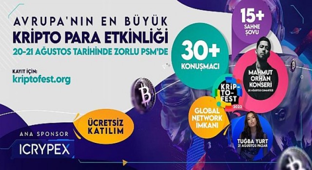 Avrupa’nın en büyük kripto festivali Kripto Fest 2022, müzik dünyasının önde gelen isimlerini sevenleriyle bir araya getirecek. ICRYPEX ana sponsorluğunda gerçekleşecek olan festivalde Türkiye’nin sevilen seslerinden Tuğba Yurt ve elektronik müziğin önde gelen isimlerinden DJ Mahmut Orhan sahne alacak.