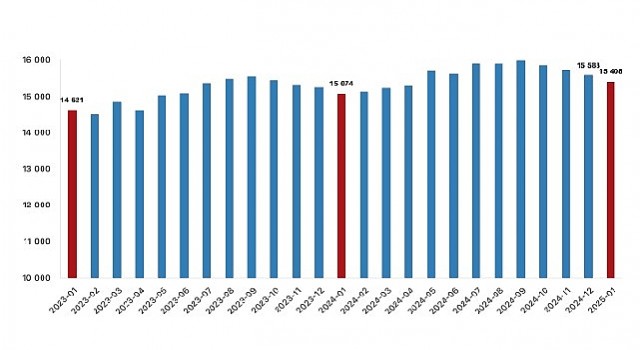 Ücretli çalışanların alt detaylarına bakıldığında; 2025 Ocak ayında ücretli çalışan sayısı yıllık olarak sanayi sektöründe %1,4 azaldı, inşaat sektöründe %6,4 arttı ve ticaret-hizmet sektöründe %3,5 arttı.