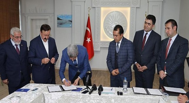 Daha sonra Vali Mehmet Emin Bilmez ve sendika yöneticileri arasında karşılıklı imzalar atıldı.