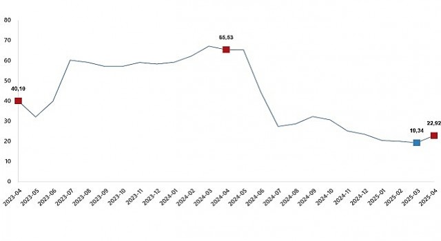 | Bir önceki yılın aynı ayına göre değişim oranı | 22,92 | 65,53 | 40,10 |